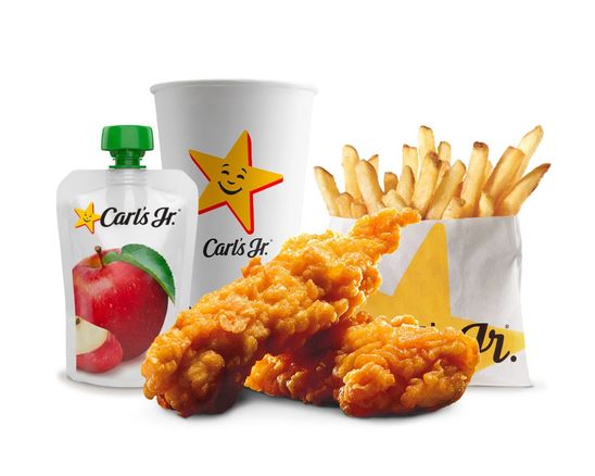 2 Chicken Tenders, servis avec un accompagnement et une petite boisson.