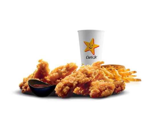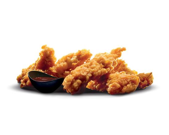 5 Chicken Tenders, servis avec un accompagnement et une boisson.