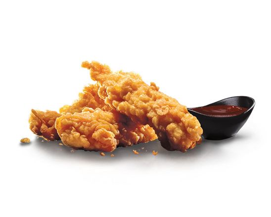 3 Chicken Tenders, servis avec un accompagnement et une boisson.