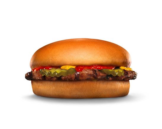 Un Hamburger, servi avec un accompagnement et une petite boisson.