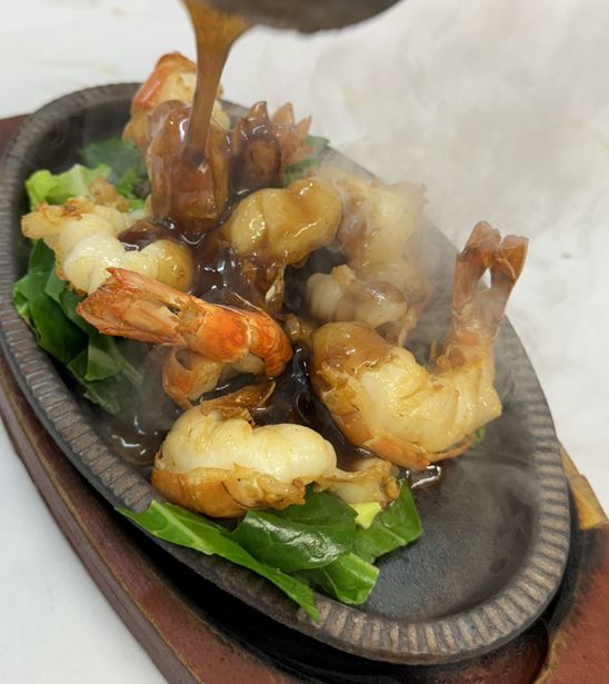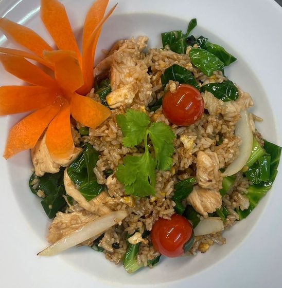 Special fried rice with garlic, dark soy sauce, onion, tomato, spring green and a choice of meat or seafood