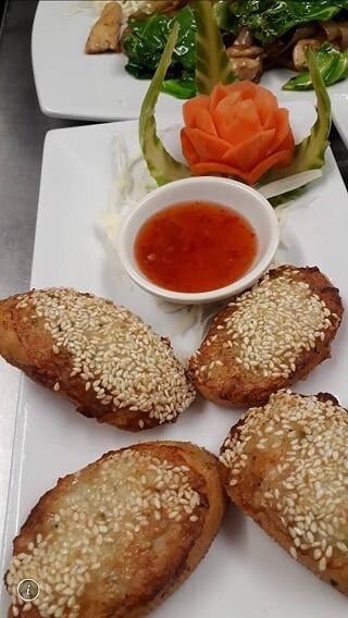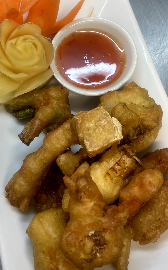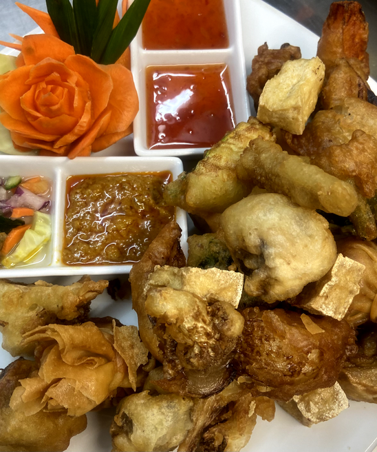 Combination of: vegetable spring roll, Thai vegetable pocket, vegetable tempura and deep fried tofu. Minimum o...