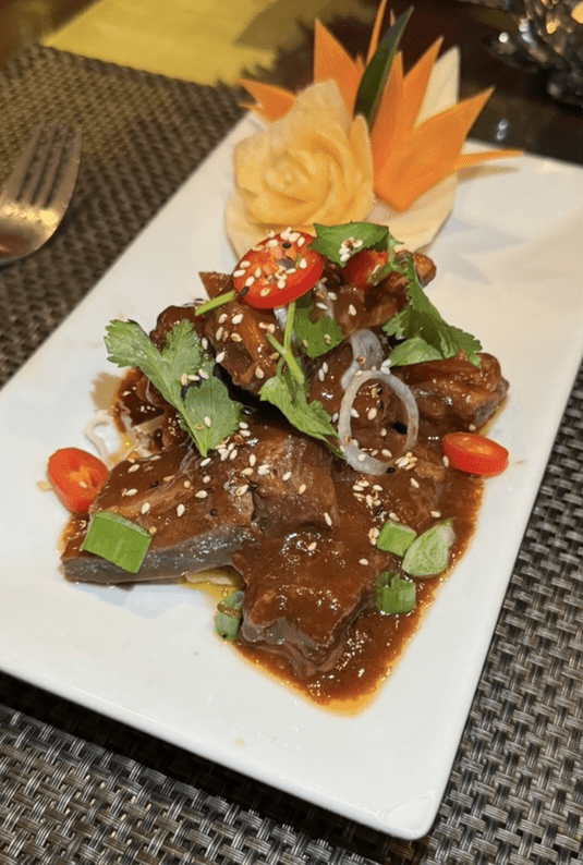 Slices of roasted duck topped with chef’s special tamarind sauce