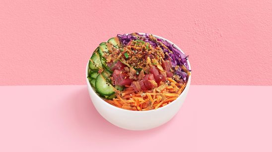 Riso Bianco, Tonno, Goma Wakame, Cavolo Rosso, Carote, Cetrioli, House Ponzu, Salsa Spicy Peanuts, Peperoncino...