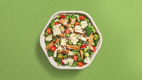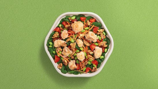 Spinacino con Olio al Limone, Quinoa Bicolour, Pollo Teriyaki e Zenzero, Edamame, Avocado Hass, Pomodorini Dat...