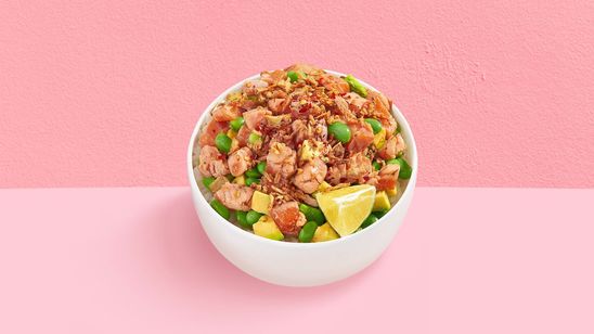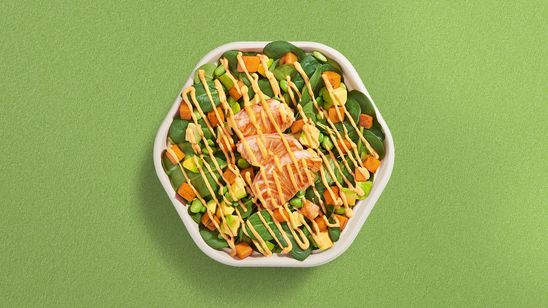Riso Bianco, Sriracha Salmon, Avocado Hass, Edamame, Peperoncino in Foglie, Salsa Sriracha Drizzle, Cipolla Cr...