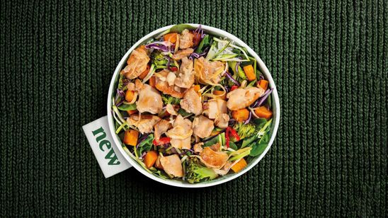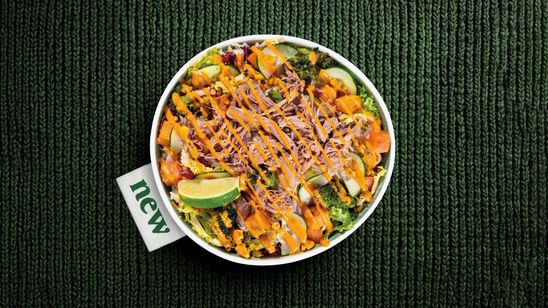 Winter Mix Salad con Vinaigrette, Broccoli Chili e Lime, Patate dolci al Rosmarino, Cetrioli, Mais Grigliato, ...