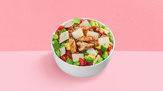 Spinacino, Quinoa Bicolour, Pollo Teriyaki e Zenzero, Edamame, Avocado Hass, Pomodorini Datterini, Olio EVO Ar...