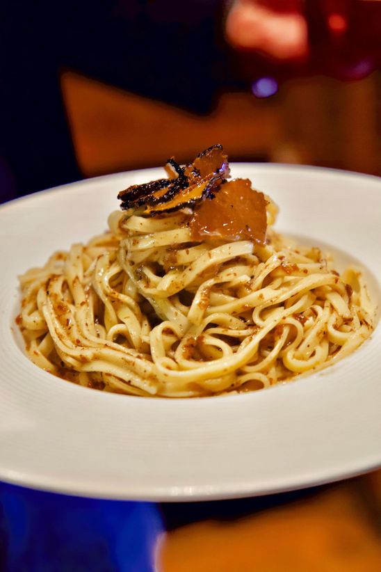 Tagliolini with sage cream, rolled in Grana Padano AOP Blazed with cognac