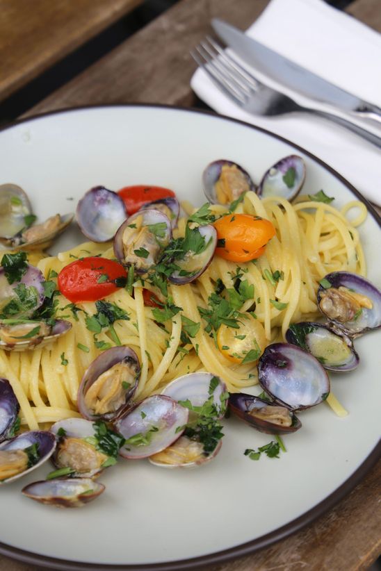 Tagliolini fraiche à la crème d'asperges, tomates cerises confites maison, jambon de Parme AOP