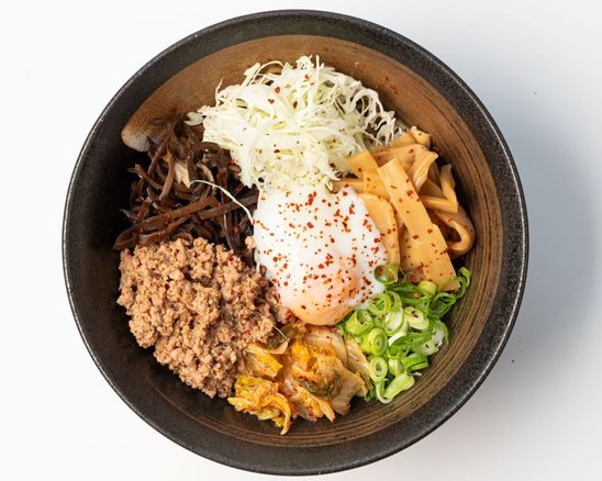 Our infamous brothless ramen with a thick and umami sauce, mazemen meat, kimchi, mushrooms, cabbage, perfect e...