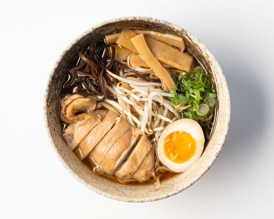 Light chicken broth with salty shoyu tare, teriyaki chicken, marinated egg, menma, soy sprouts, scallions & mu...