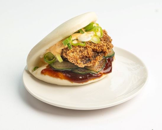 Steamed bread bun, crispy fried chicken, spicy mayo, sunomono and spring onion. You've got to try this, believ...