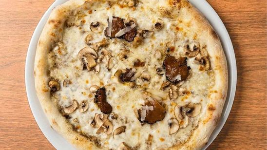 Crème de champignons, mozzarella fior di latte, Grana Padano AOP et truffe noire d'été.