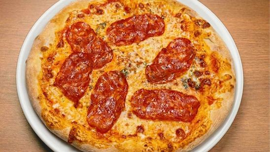 Sauce tomate, mozzarella fior di latte, salami piquant et origan.
